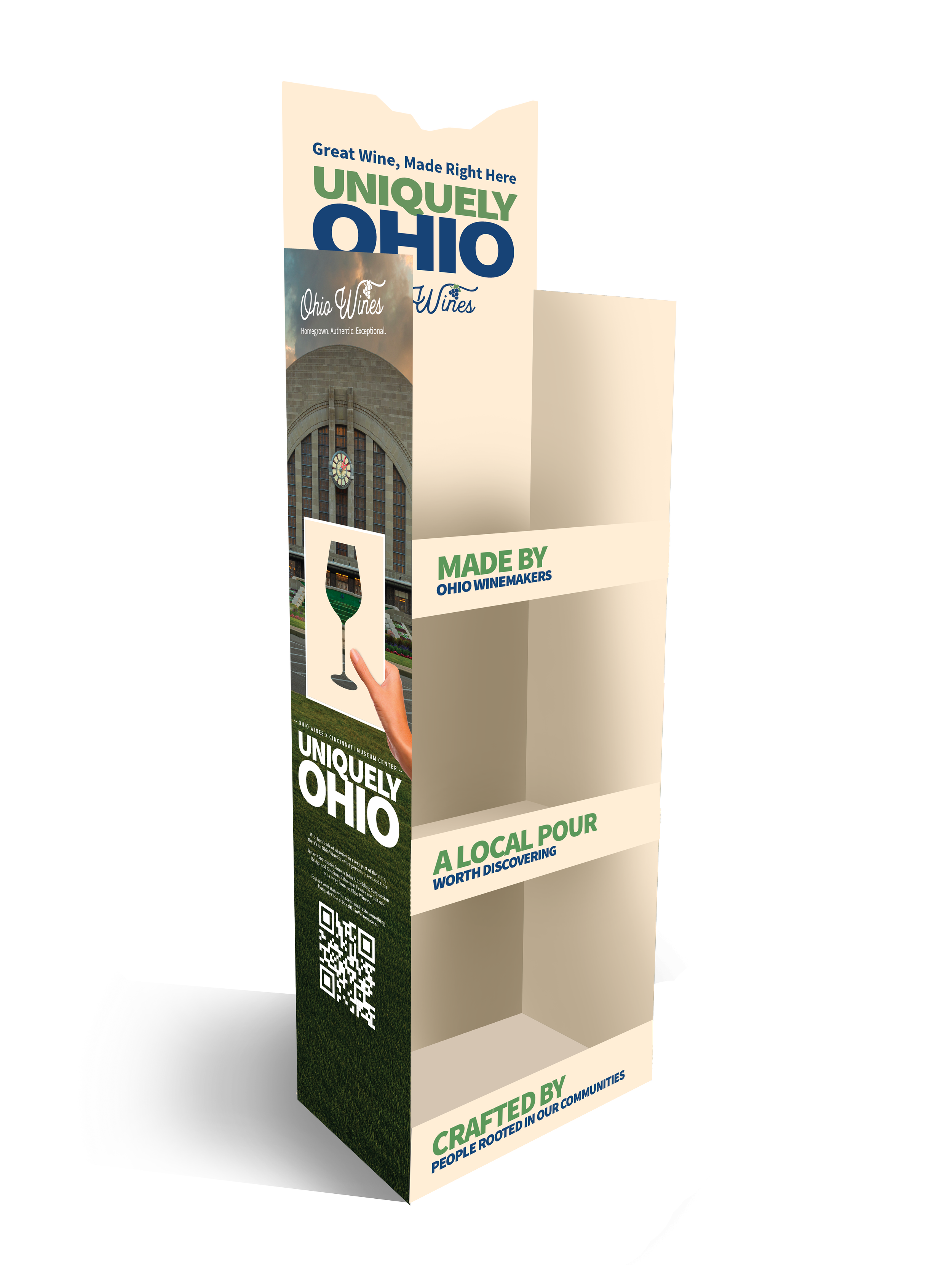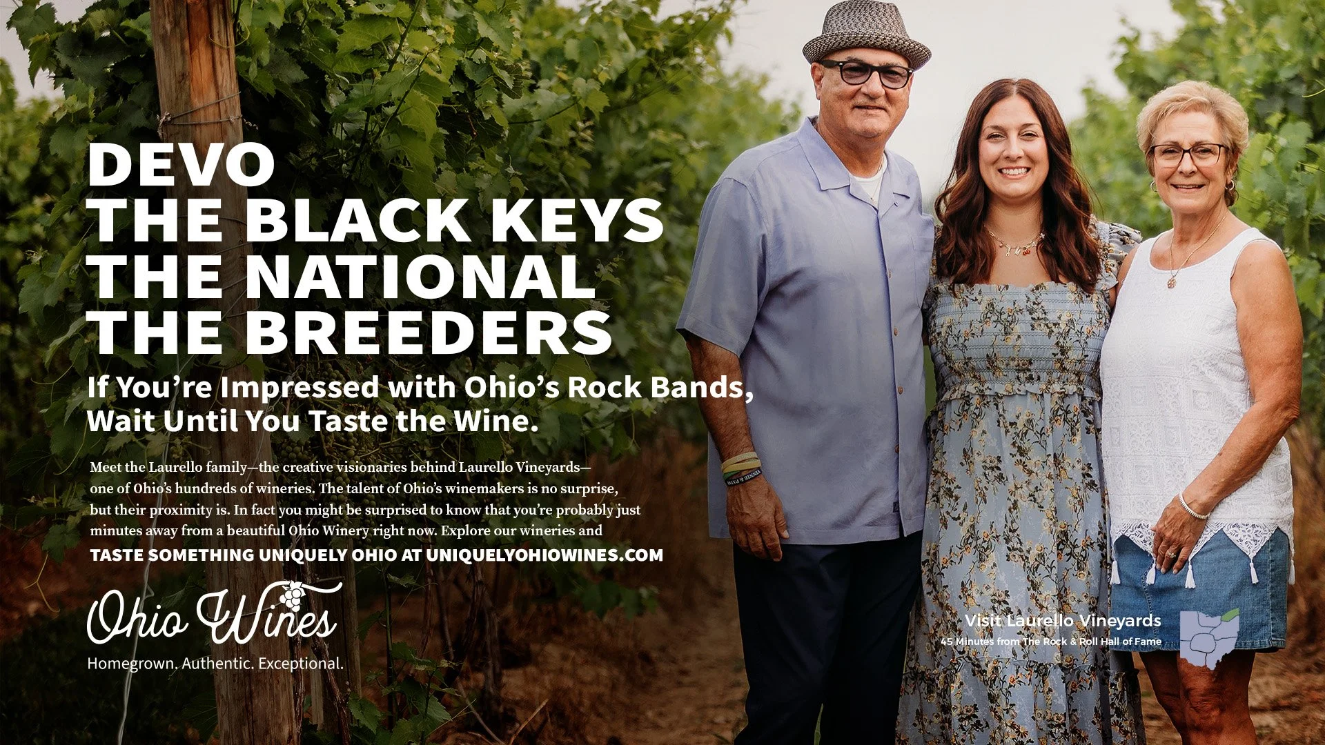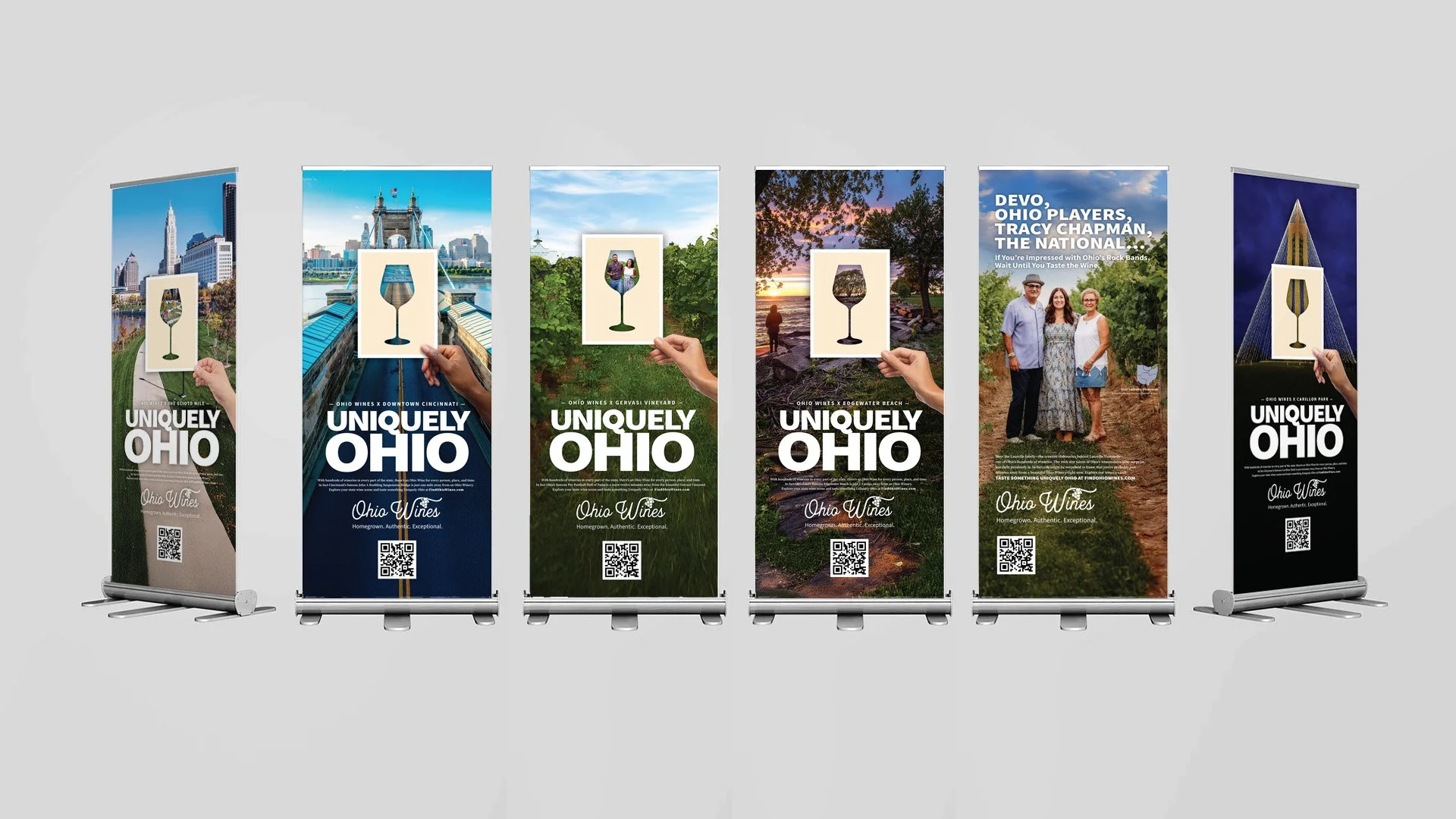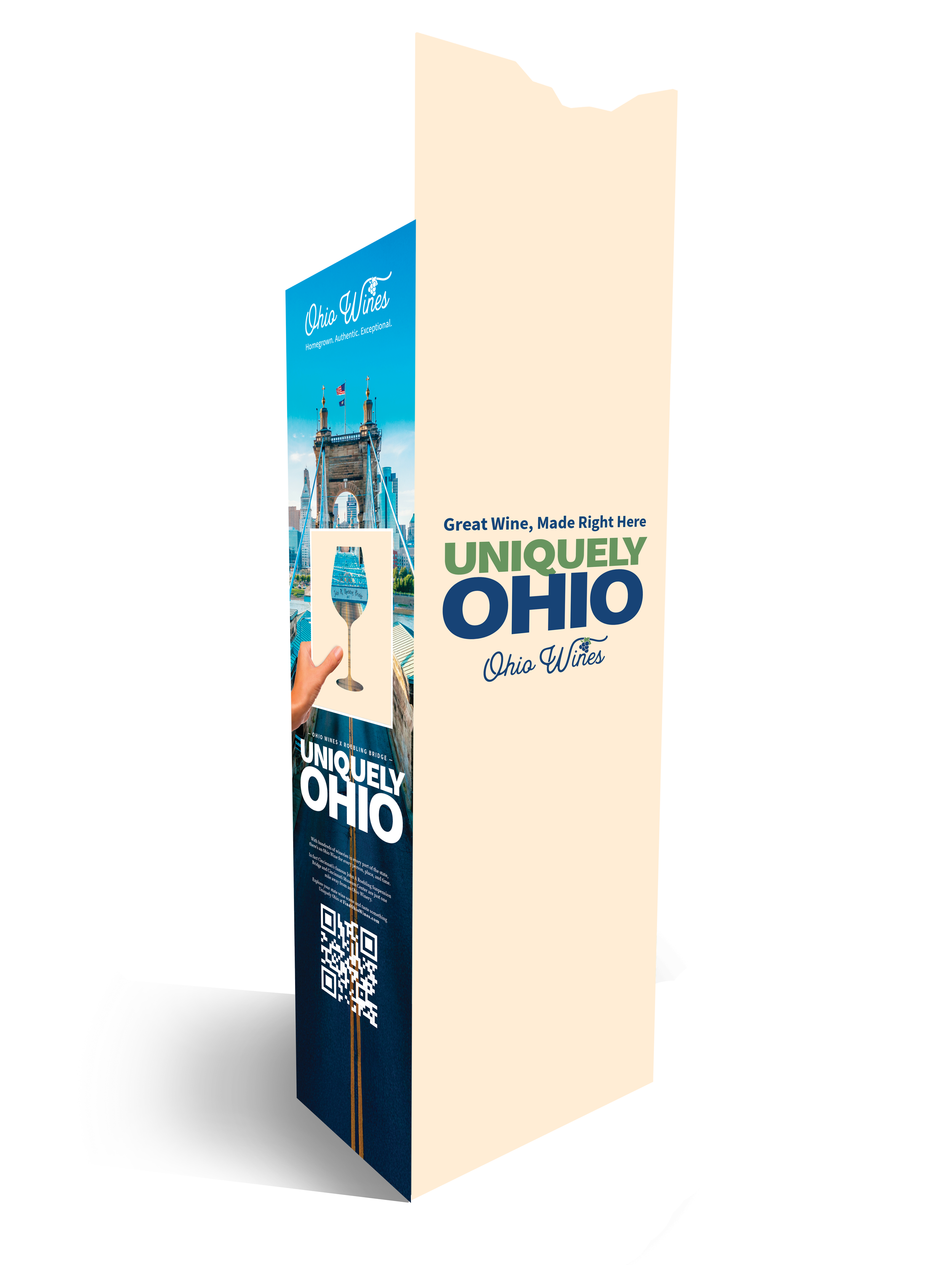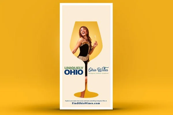 The campaign came to life through bold creative designed to capture attention and connect Ohio pride with Ohio wine using familiar cultural references and recognizable landmarks. The campaign extends across a wide range of touchpoints, from a dedicated landing page and digital advertising to winery materials such as pull-up banners, engaging social-worthy photo ops, and branded apparel, as well as retailer outreach, media relations, ongoing social media content, and event participation. Together, these efforts create a cohesive statewide presence that invites people to explore the people, places, and experiences that make Ohio wine Uniquely Ohio.