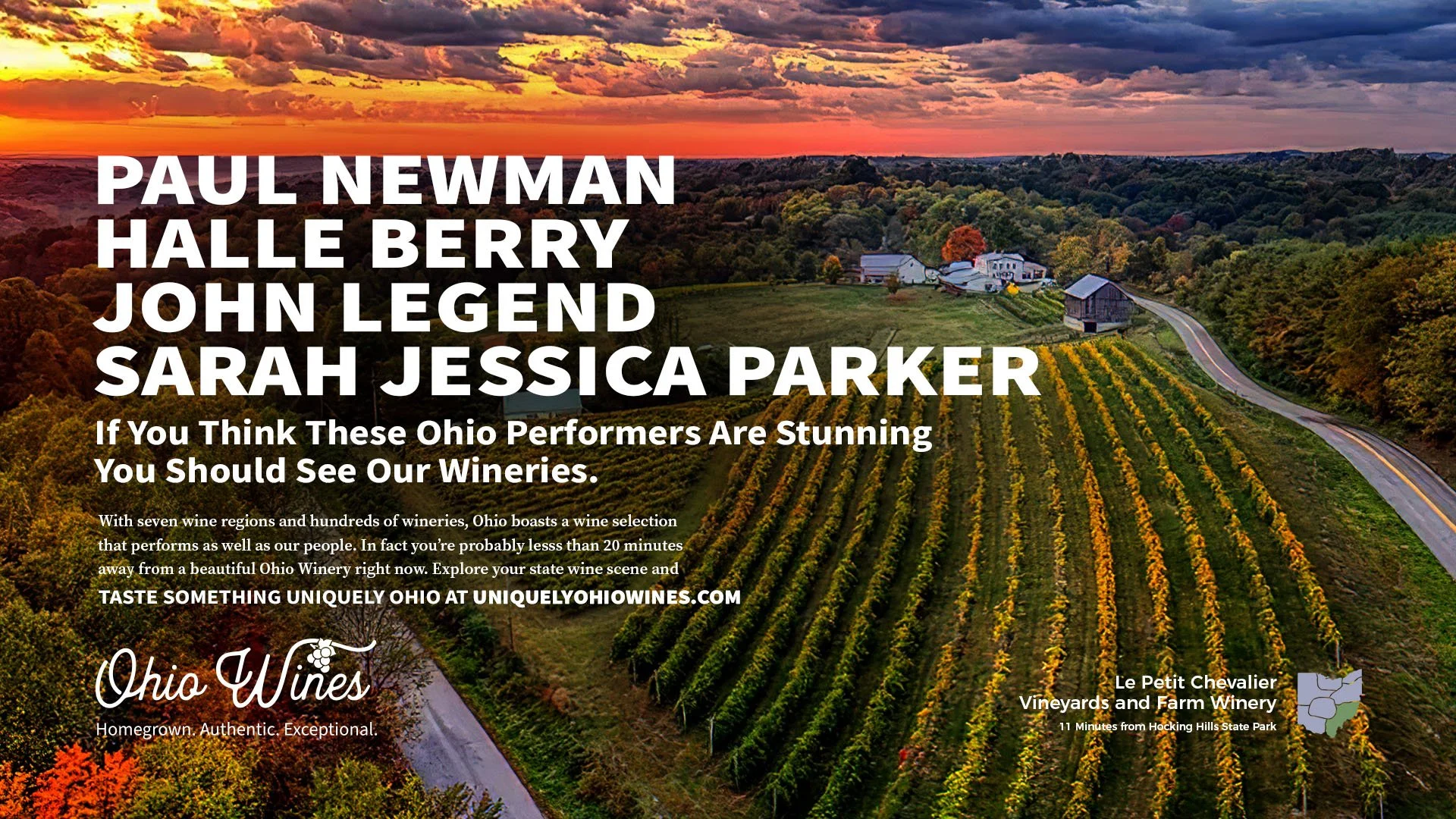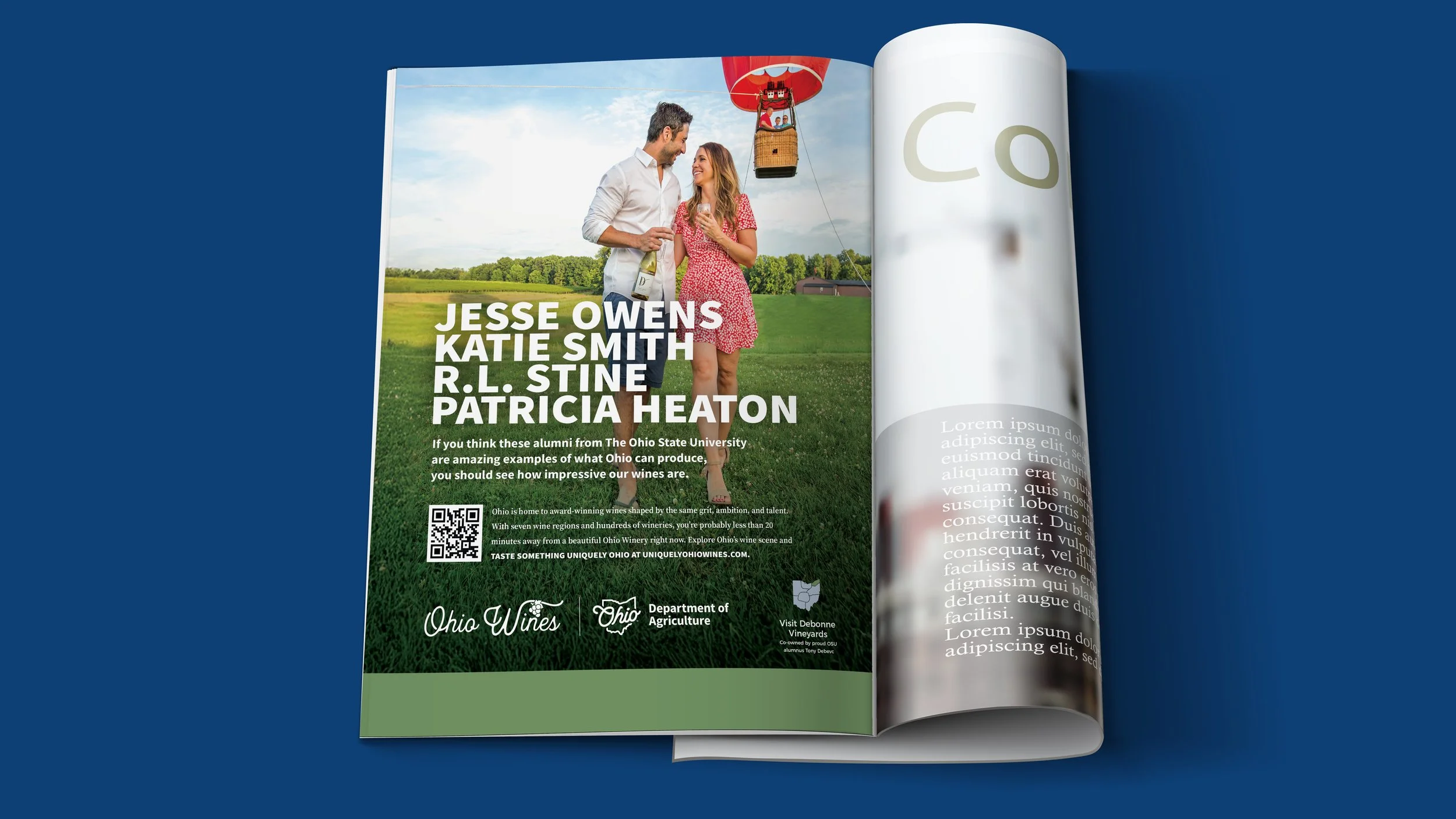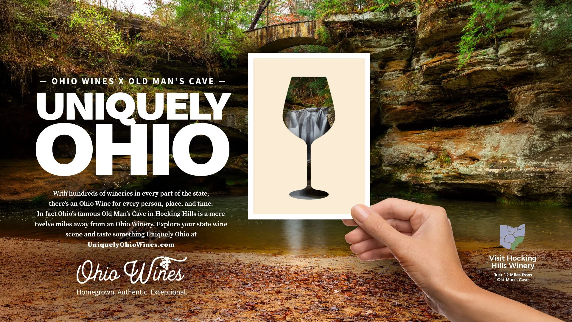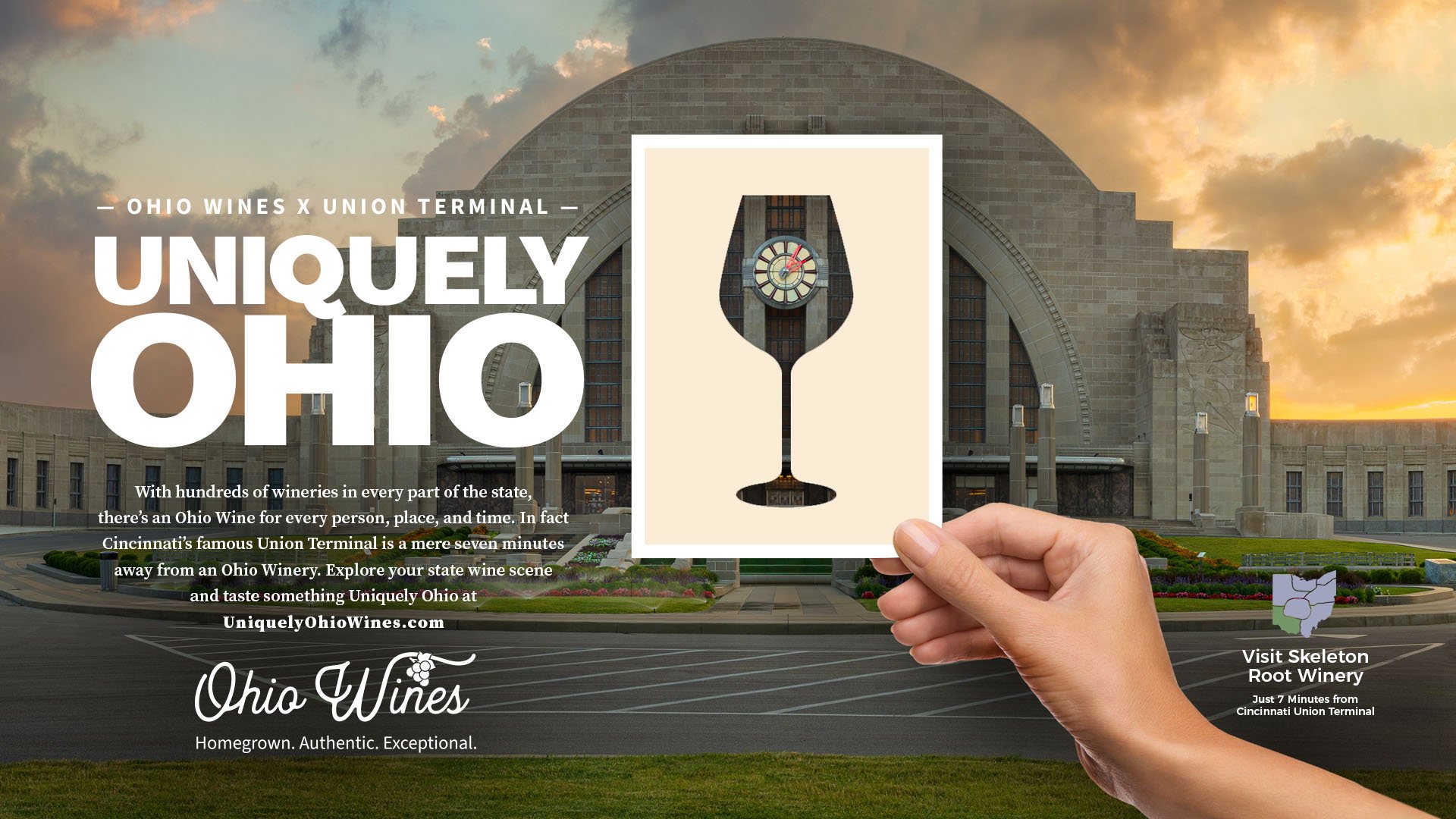 The campaign came to life through bold creative designed to capture attention and connect Ohio pride with Ohio wine using familiar cultural references and recognizable landmarks. The campaign extends across a wide range of touchpoints, from a dedicated landing page and digital advertising to winery materials such as pull-up banners, engaging social-worthy photo ops, and branded apparel, as well as retailer outreach, media relations, ongoing social media content, and event participation. Together, these efforts create a cohesive statewide presence that invites people to explore the people, places, and experiences that make Ohio wine Uniquely Ohio.